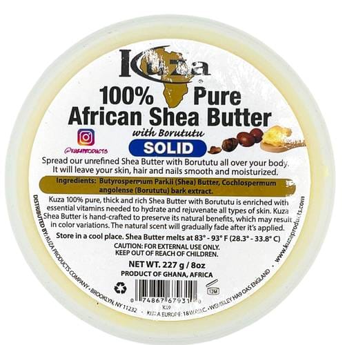 made from 100% pure African shea butter, carefully sourced and crafted to maintain its natural, raw properties. Known for its rich content of vitamins A, E, and F, this shea butter deeply moisturizes and nourishes the skin, improving elasticity and reducing dryness. It helps to soothe skin irritation, promote healing, and provide relief for cracked heels and rough patches.